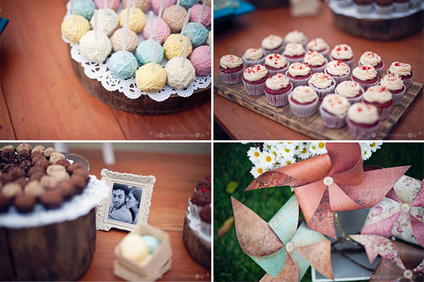 | Trabalhos manuais: tudo feito pelas irmãs dos noivos. |
